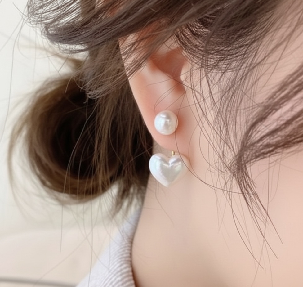 Golden pearl heart earrings