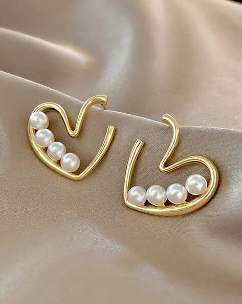 Pearl Heart Gold Plated Earrings