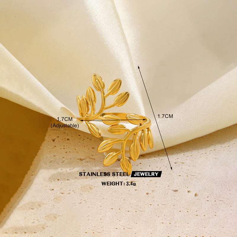 Golden Leaf Adjustable Gold-Plated Anti Tarnish Finger ring