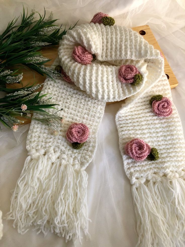 handcrafted crochet rose scarf