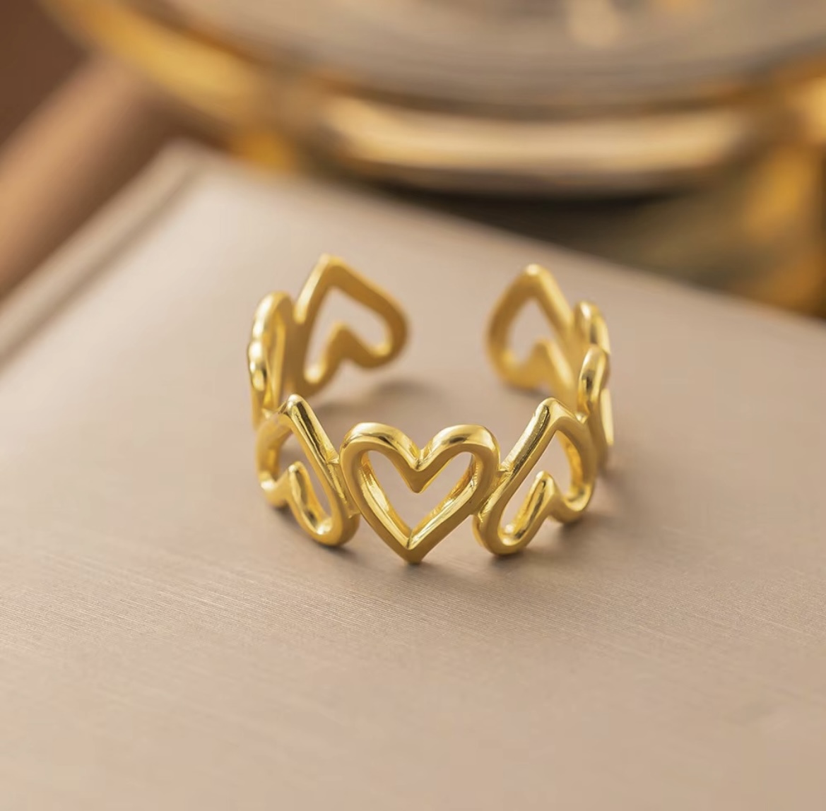 Heart Adjustable Gold-Plated Anti Tarnish Finger ring